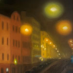 Maalauksia öisistä kaduista ja kaupungin valojen heijastuksista 2025.